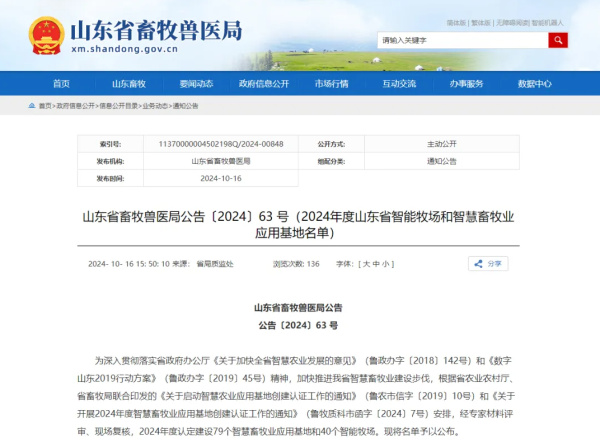 10月16日,省畜牧獸醫(yī)局公布了2024年度山東省智能牧場和智慧畜牧業(yè)應用基地名單,我市山東合力牧業(yè)有限公司等8家企業(yè)獲評2024年度山東省智能牧場,山東盛澤強養(yǎng)殖有限公司等16家企業(yè)獲批2024年度山東省智慧畜牧業(yè)應用基地,數(shù)量均居全省一。